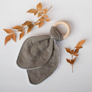Check wooden ring for wear each use. Never leave a child unattended while using the teether.