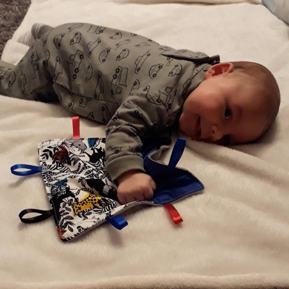 These taggies have a crinkly material inside that babies love which are great to stimulate the hearing senses and a soft snuggly minky fabric on the back