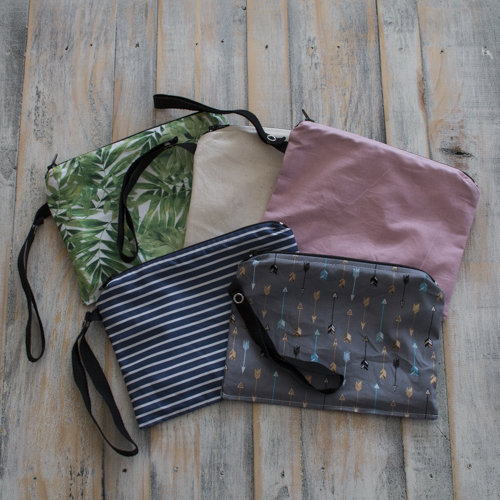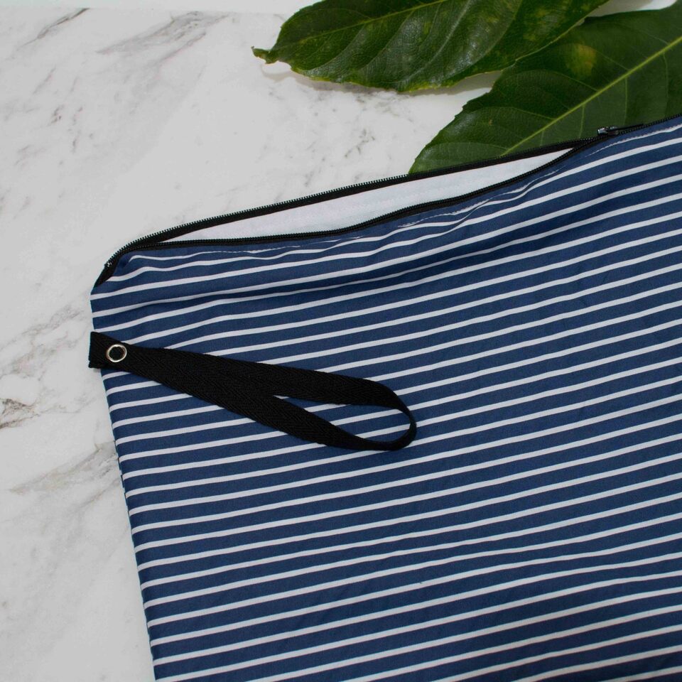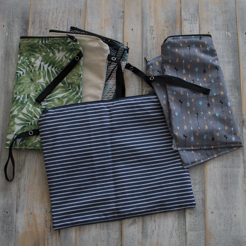 All wet bags are lined with waterproof fabric, feature a zip closure, and include a handy domed strap for hanging on prams, change tables, or bags.